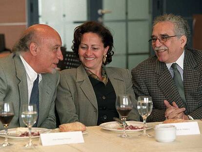 Isabel Polanco con Gabriel García Márquez y Manuel Vicent