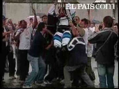 Los manifestantes causan desperfectos en los accesos a la fábrica lucense