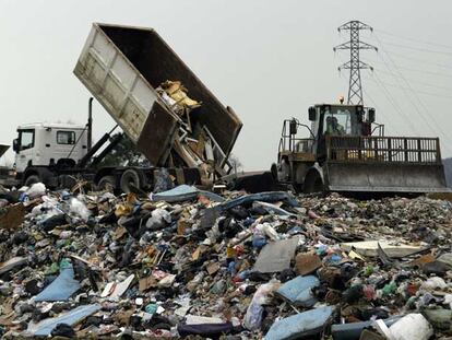 Una excavadora trabajando en el vertedero de San Marcos