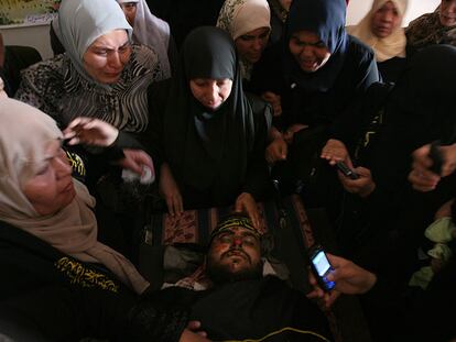 Velatorio de un militante del movimiento Yihad Islámica muerto en un ataque israelí