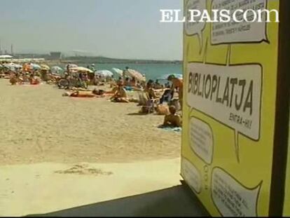 Típica estampa de playa. El mar, gente bronceándose, castillos de arena y chiringuitos. Aunque en una cala barcelonesa hay una biblioplaya. Aquí, en vez de granizados, sólo ofrecen libros. Los que no saben estarse quietos en la toalla son los que más utilizan este servicio.