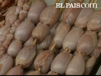 El arácnido se codea con los testículos de cordero o los corazones a la brasa en los mercados de la capital