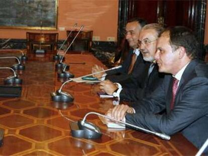 El ministro de Economía y Hacienda, Pedro Solbes, se ha reunido este jueves por la tarde con Cristóbal Montoro, portavoz económico del PP