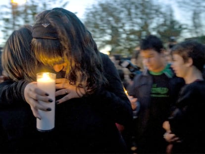 Amigos y compañeros de clase de María Dolores se concentraron ayer en Ripollet