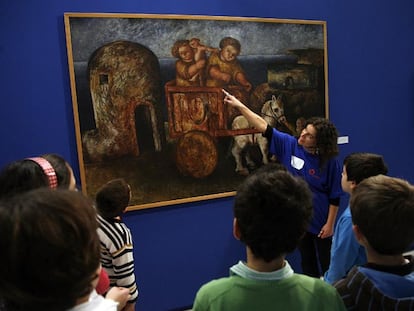 Una monitora explica un cuadro de Laxeiro