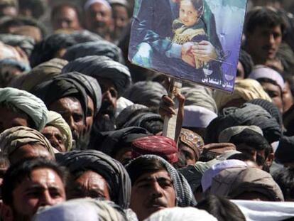 Ciudadanos afganos escuchan un discurso del presidente Hamid Karzai