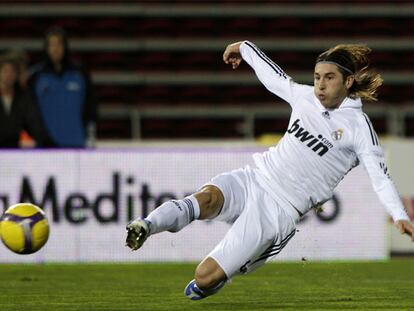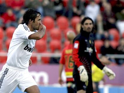 Raúl festeja su gol 212 en la Liga en su partido 500