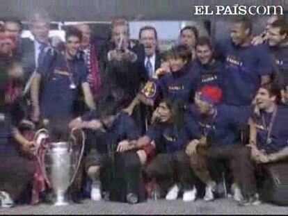 La plantilla azulgrana recorre las calles de Barcelona ante miles de aficionados eufóricos