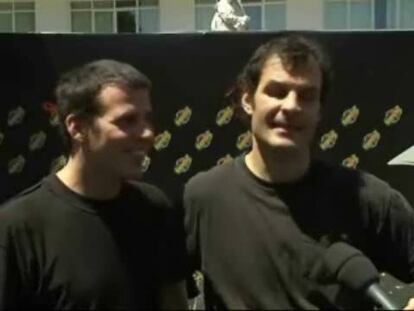 Steve -O y Matt Hoffman, los protagonistas del gamberro programa de 'Jackass' (MTV) aceptaron el reto de Radical y se sometieron a una "naranjada" extrema en la Plaza de Santa Ana de Madrid.