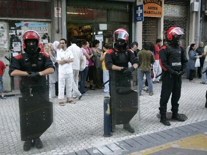 Varios 'ertzainas' vigilan la manifestación contra la inseguridad en el barrio de Iztieta