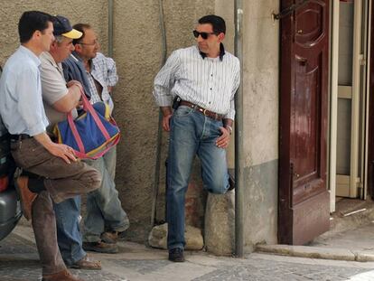 Hombres en una calle de Corleone, Sicilia (Italia)