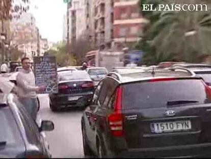 Fernando trabaja para una taberna Valenciana cantando los platos del día en plena calle
