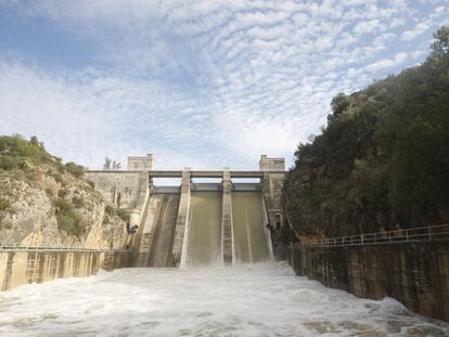 El pantano de Bornos, el pasado día 27 de diciembre, desembalsando agua.