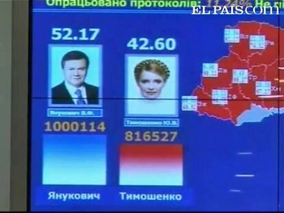 La actual primera ministra, Yulia Timoshenko, se queda a casi 3 puntos de su rival y denuncia fraude.
