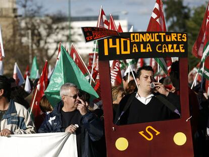 Manifestación de los trabajadores de la empresa municipal de transportes de Sevilla (Tussam).