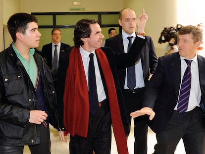 El ex presidente del Gobierno, José María Aznar, con el dedo levantado