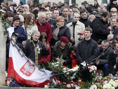 Ciudadanos polacos expresan su duelo ante el palacio presid