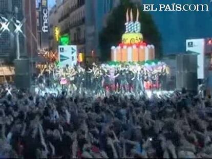 Cientos de personas bailan al unísono la canción de Black Eyed Peas para celebrar el centenario de la Gran Vía