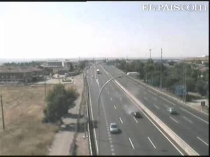 Imágenes de la Dirección General del Tráfico de un accidente entre dos camiones en la A1. El suceso ocurrió el pasado fin de semana.
