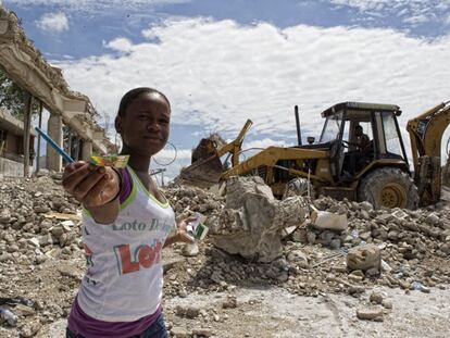 Una mujer vende lotería en las ruinas del campo de Marte.