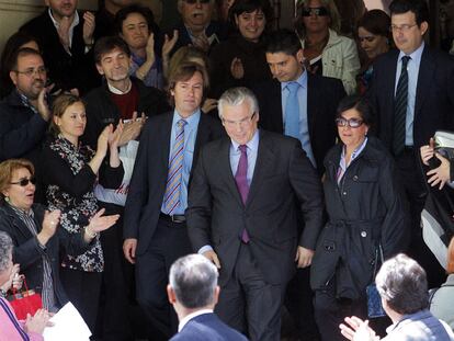 El magistrado Garzón, junto a su esposa y el juez Pedraz