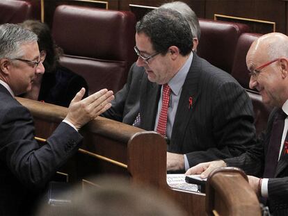 José Blanco (izquierda) charla con los diputados de CiU Pere Macías y Duran Lleida
