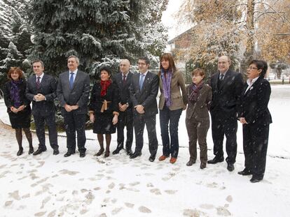 El 'lehendakari', ayer con su Gobierno en los jardines de Ajuria Enea