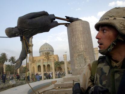 Derribo de una estatua de Sadam Husein