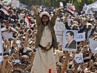 Una multitud de manifestantes en Yemen