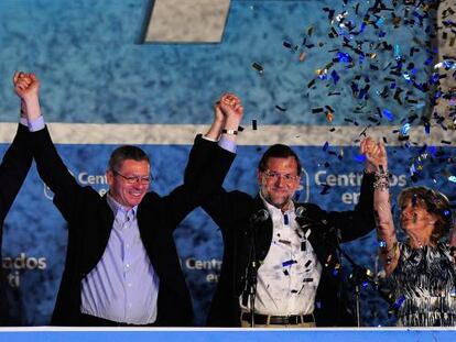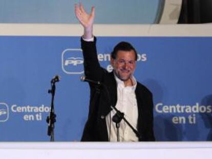 Los populares aventajan 10 puntos al PSOE en las elecciones municipales El PP gana en 10 de las 13 autonomías en juego y el PSOE solo aspira a gobernar Extremadura Rajoy da las gracias a los votantes entre gritos de "Bildu fuera" de los militantes populares