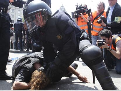 121 heridos en una contundente carga policial que despejó la plaza de Catalunya durante dos horas - 10.000 personas participaron anoche en la cacerolada