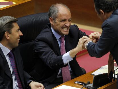 Un diputado del PP saluda a Francisco Camps