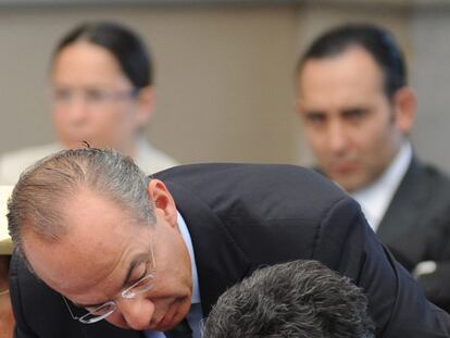 El presidente Felipe Calderón consuela a una mujer