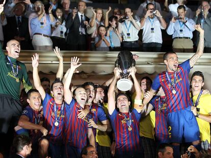 El Barcelona agranda ante el Oporto su colección de títulos gracias a un gol del argentino y otro de Cesc - Lleva ganados con Guardiola 12 de los 15 trofeos posibles