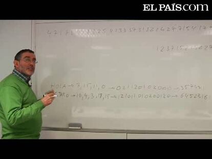 El cuadragésimo y último de los desafíos con los que hemos celebrado el <a href="http://www.rsme.es/centenario/" target="blank">centenario de la Real Sociedad Matemática Española</a> lo presenta Adolfo Quirós, profesor de la <a href="http://www.uam.es/ss/Satellite/es/home" target="blank">Universidad Autónoma de Madrid</a> y coordinador desde la RSME de esta iniciativa. Manda tu solución antes de las 00.00 horas del martes 20 de diciembre (medianoche del lunes, hora peninsular española) a <a href="mailto:problemamatematicas@gmail.com">problemamatematicas@gmail.com</a> y participa en el sorteo entre los acertantes de <a href="http://www.elpais.com/promociones/matematicas/">una biblioteca matemática</a> como la que cada domingo distribuye EL PAÍS en el quiosco.<p></p><p> A continuación, para aclarar las dudas y <b>en atención a nuestros lectores sordos</b>, añadimos el enunciado del problema por escrito. </p><p> Queremos transmitir un mensaje secreto. Para eso vamos a transformar un texto, que está escrito en el alfabeto castellano de 27 letras, de la A a la Z (incluyendo Ñ y W), en otro texto que se escribe usando solo 9 símbolos: los números del 1 al 9. Veamos como lo hacemos y lo ilustraremos con dos ejemplos. </p><p> Primero numeramos las letras por orden del 0 al 26, A=0, B=1, C=2, D=3,..., N=13, Ñ=14,..., W=23, X=24, Y=25, Z=26. Por ejemplo: </p><p> HOLA-> 7,15,11,0 </p><p> PEDRO->16,4,3,18,15 </p><p> A continuación escribimos cada uno de esos números como un número de tres cifras en base 3. Recordemos lo que esto quiere decir: Los números los escribimos normalmente en base 10, usando unidades (1=10^0), decenas (10=10^1), centenas (100=10^2), etc. Así, 3418 representa el número 3x10^3 + 4x10^2 + 1x10 + 8. Para escribir en base 3 usamos potencias de 3, y sólo necesitamos las cifras 0, 1 y 2. Por ejemplo, la expresión 212 en base 3 representa la cantidad 2x3^2+1x3+2, que en base 10 se escribiría como 23. </p><p> Nuestras letras quedarán entonces representadas por A=000, B=001, C=002, D=010, ..., N=111, Ñ= 112,..., W=212, X=220, Y=221, Z=222. Siguiendo con nuestros ejemplos: </p><p> HOLA-> 7,15,11,0 -> 0 2 1 1 2 0 1 0 2 0 0 0</p><p> PEDRO->16, 4, 3, 18, 15 -> 1 2 1 0 1 1 0 1 0 2 0 0 1 2 0</p><p> Obsérvese que hemos escrito 3 cifras por cada número (no hemos quitado los ceros a la izquierda) y, también, que hemos escrito todos los números seguidos, sin las comas que los separaban antes. Ahora viene la parte <i>secreta</i>. Haciendo algo que no os vamos a decir, porque descubrirlo es precisamente el desafío, transformamos finalmente nuestros textos en otros escritos usando sólo los números del 1 al 9. En los ejemplos: </p><p> HOLA-> 7, 15, 11, 0 -> 0 2 1 1 2 0 1 0 2 0 0 0 -> 3 5 7 4 7 1</p><p> PEDRO->16, 4, 3, 18, 15 -> 1 2 1 0 1 1 0 1 0 2 0 0 1 2 0 -> 6 4 5 2 3 1 6 1</p><p> El desafío consiste en leer el siguiente mensaje, que ha sido cifrado usando el procedimiento que hemos descrito, incluida la parte secreta: </p><p> 4 7 1 7 5 4 1 3 3 2 5 4 1 3 3 3 7 3 1 3 2 2 6 2 7 7 1 5 4 1 7 9 4 1 2 3 7 1 5 2 1 5 2 2 7 7 1 </p><p> <b>ALGUNAS OBSERVACIONES IMPORTANTES</b>. En el texto original no se utilizan signos de puntuación, acentos, ni siquiera los espacios entre palabras, que serían otro símbolo. Una buena idea es ir probando los procedimientos que se os ocurran en los dos ejemplos. Estrictamente hablando, el procedimiento es ligeramente distinto si el texto original tiene un número par o impar de letras, pero la diferencia no influye en nada en cómo leer los mensajes, es una cuestión puramente técnica que resultará evidente a posteriori. <b>Se considerará válida cualquier solución que haya sido capaz de descifrar el código y dé el mensaje correcto, pero, como siempre, nos gustaría saber cómo habéis llegado a ella</b>. </p><p> <a href="http://www.elpais.com/articulo/sociedad/desafios/matematicos/elpepusoc/20110712elpepusoc_8/Tes">DESAFÍOS ANTERIORES Y SUS SOLUCIONES</a></p>
