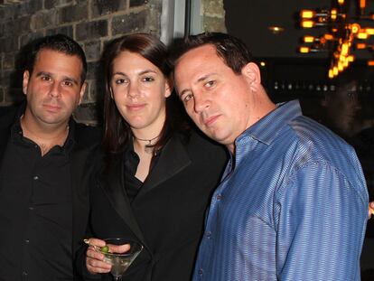 Megan Ellison, rodeada por dos colegas productores