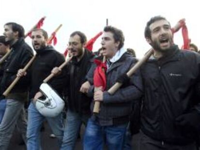 Los agentes han marchado de paisano pero vestidos de azul Protestan por los ajustes de plantilla, los recortes salariales y su inseguridad laboral
