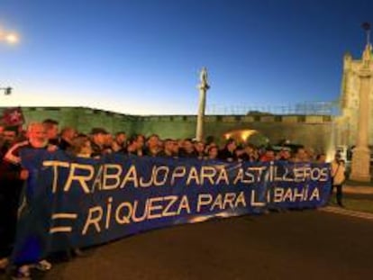 Trabajadores de Navantia cortan el tráfico en el puente de acceso a Cádiz