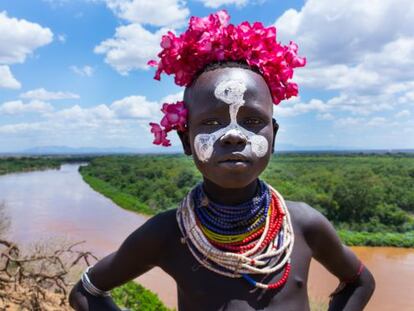 Las tribus que pueblan las riberas del río Omo, al sur de Etiopía, se adornan con pinturas simbólicas y coloristas tocados a base de flores