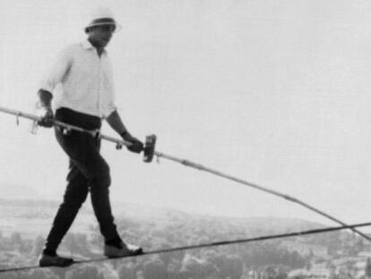 El funámbulo francés batió varios récords con sus distintos números, ejecutados siempre sin red u otras protecciones