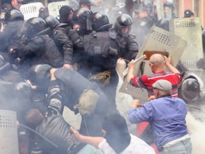 Nuevas ocupaciones de edificios subrayan la pérdida de control ante los prorrusos Miles de mineros participan en la revuelta contra el Gobierno de Ucrania