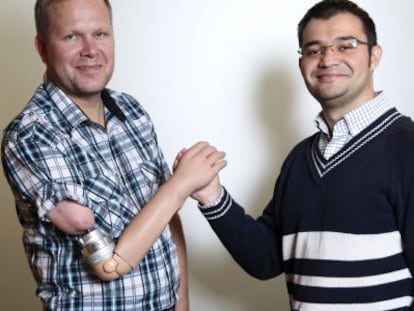 Magnus Niska y Max Ortiz, paciente e ingeniero de una prótesis biónica de brazo, visitan Madrid para alertar de la necesidad de que aumente la investigación en este campo