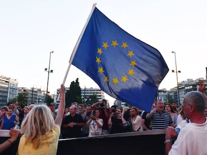 Els manifestants denuncien el paper de la UE en la gestió d'aquesta crisi humanitària
