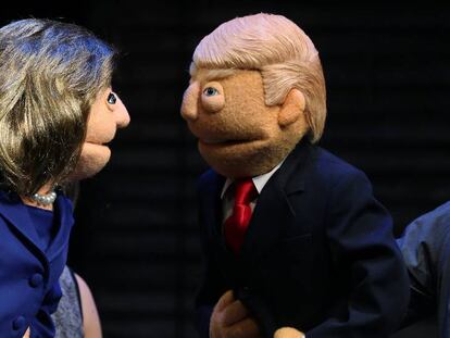 Dos cómicos representan el enfrentamiento entre los dos candidatos a la Casa Blanca utilizando marionetas