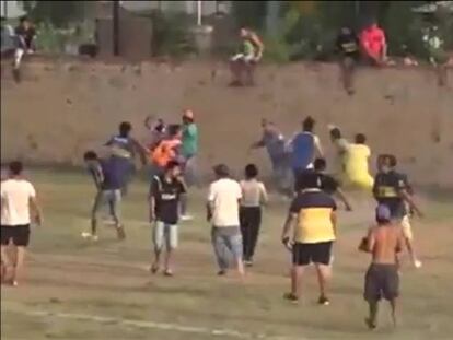 Varios espectadores saltaron al terreno de juego para agredir al colegiado y a varios policías