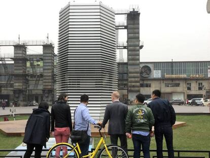 Un estudio holandés expone en la capital china una torre de siete metros de altura que aspira las partículas contaminantes del exterior