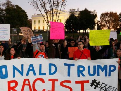 “Acabo de tener una elección presidencial de gran éxito. Ahora los manifestantes profesionales, incitados por los medios, están protestando. ¡Muy injusto!”, escribió en Twitter