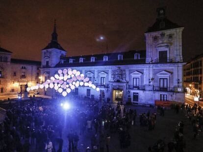 Una instalación de luz, música y globos de helio ilumina la Plaza de la Villa en un espectáculo familiar