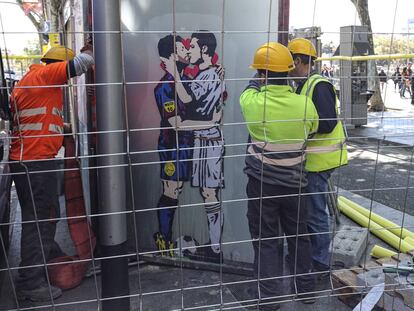 El propietari de l'antiga benzinera on TvBoy va instal·lar el petó de Messi i Ronaldo inicia la retirada del grafiti