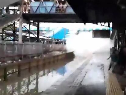 El conductor no bajó de velocidad al llegar a una parada completamente inundada
